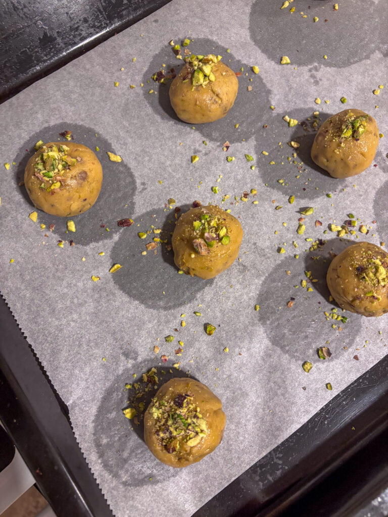 - Na konci, tesne pred vložením do trúby, posypte guličky zvyškom rozdrvených pistácií (12) a môžete dať piecť.