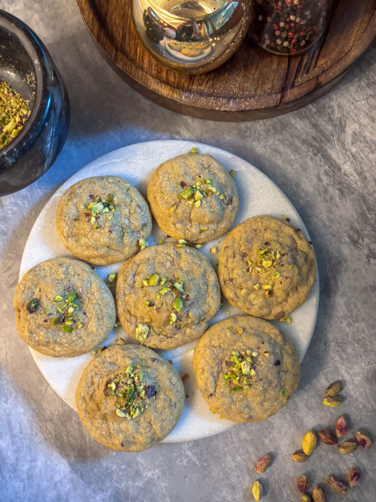 I am back! Teda dúfam 😀 Predsavzatia venovať sa viac blogu sa vždy nejak stratia. A odkedy som v Indii už duplom, času je málo na všetko. Ale konečne som sa dokopala a čím lepším začať ako niečím skvelým, sladkým a jednoduchým. Cookies sú recept, ktorému sa na mojom blogu najviac darí. Nie, že by som tu mala milión receptov 😀 ale predsa len. Zároveň je to recept, ktorý všetci zbožňujú. Ja sama robím cookies dosť často. Netrvajú dlho, nie sú náročné na ingrediencie a dlho po upečení vydržia chutné. Čo viac si priať……ja viem čo. Príchute. A čo je tento rok najviac „in“ ingrediencia? No predsa pistácie.