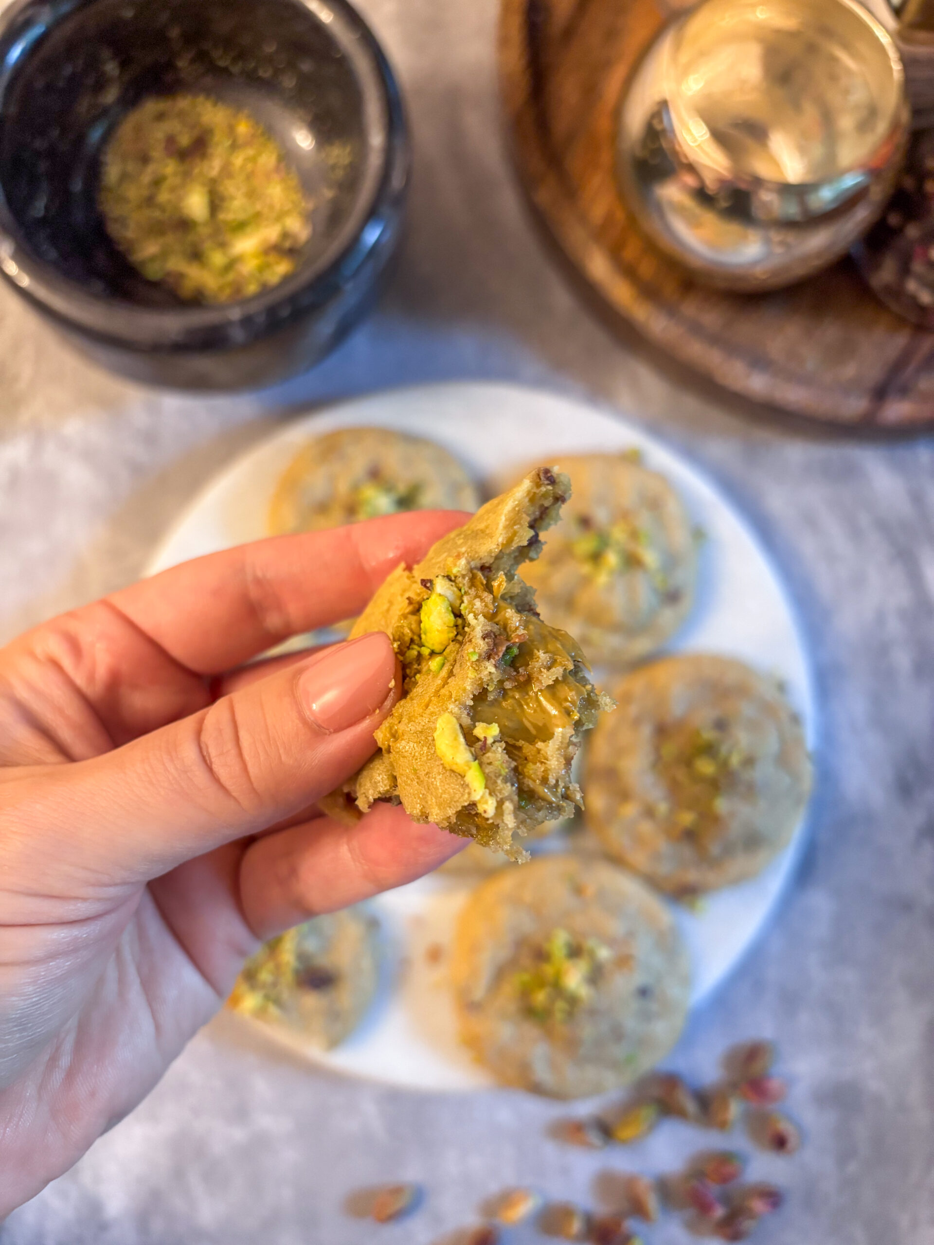 Najhoršie je, že kamkoľvek teraz pridáte pistácie, zrazu si ľudia myslia, že je to „dubajské“. Trend dubajskej čokolády je hlavne v tom, že to je spojenie čokolády, pistáciového krému, ale nesmú chýbať tie divné chrumkavé „vlasy“ (kadaif cesto). Moje cookies žiadne vlasy nemajú (maximálne tak nejaký stratený z mojej hlavy) :D. Takže nie, nejdeme robiť dubajské cookies, len proste pistáciové cookies… ale chuťovo rovnako návykové 😉 Sľubujem.
