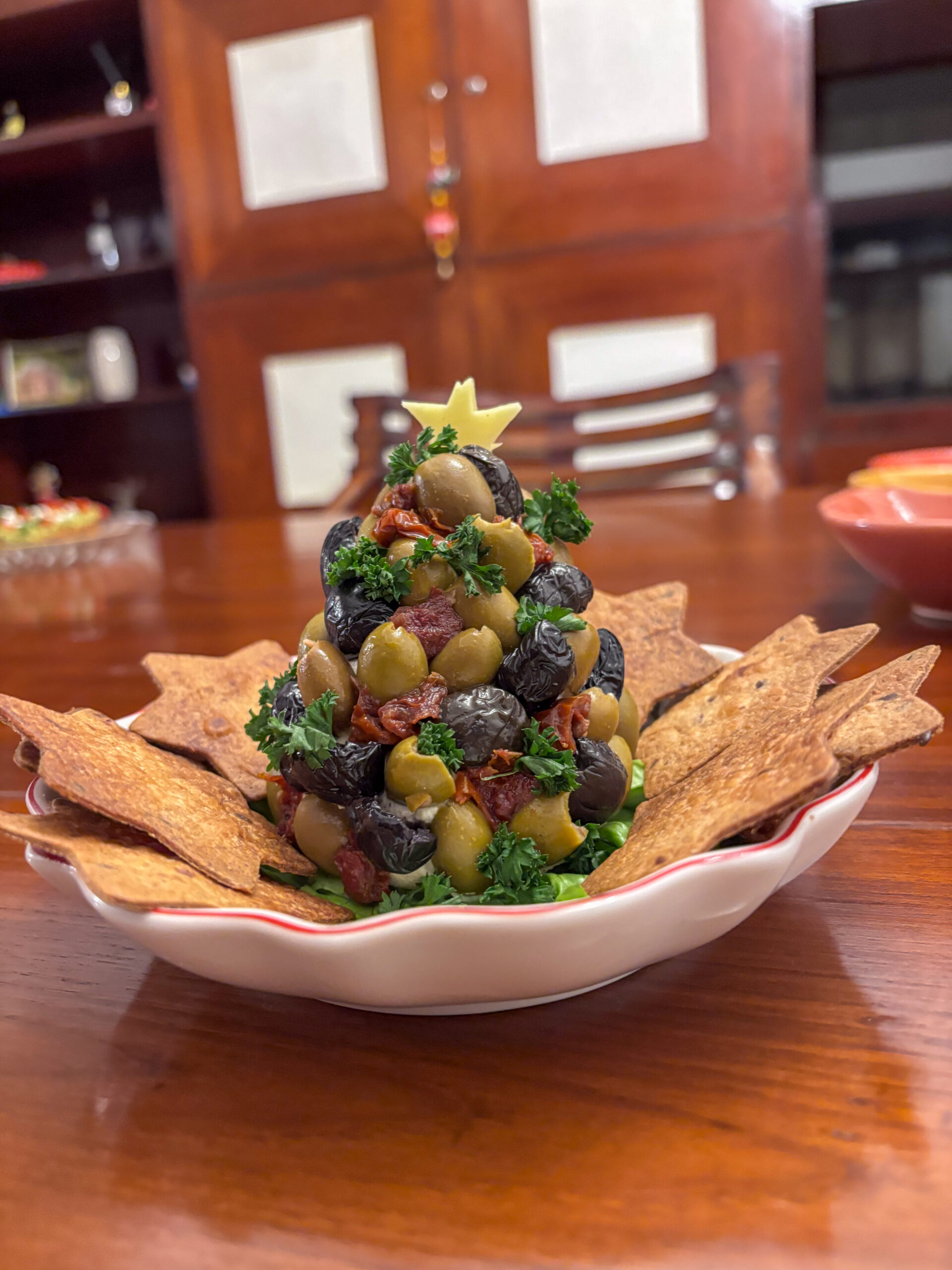 Tento stromček sa mi už dlhšie páčil. Je to v podstate taká blbosť, ale vyzerá to celkom fajn, je to jednoduché aj na ingrediencie, aj na prípravu. Viete si ho pripraviť vopred a potom držať v chladničke, najlepšie vo vzduchotesnej nádobe, kým neprídu hostia. Základ nemusí byť ani syr ale pokojne nejaká dobre držiaca nátierka – možno vajíčková s maslom by to zvládla ustáť, ten nápor olív.