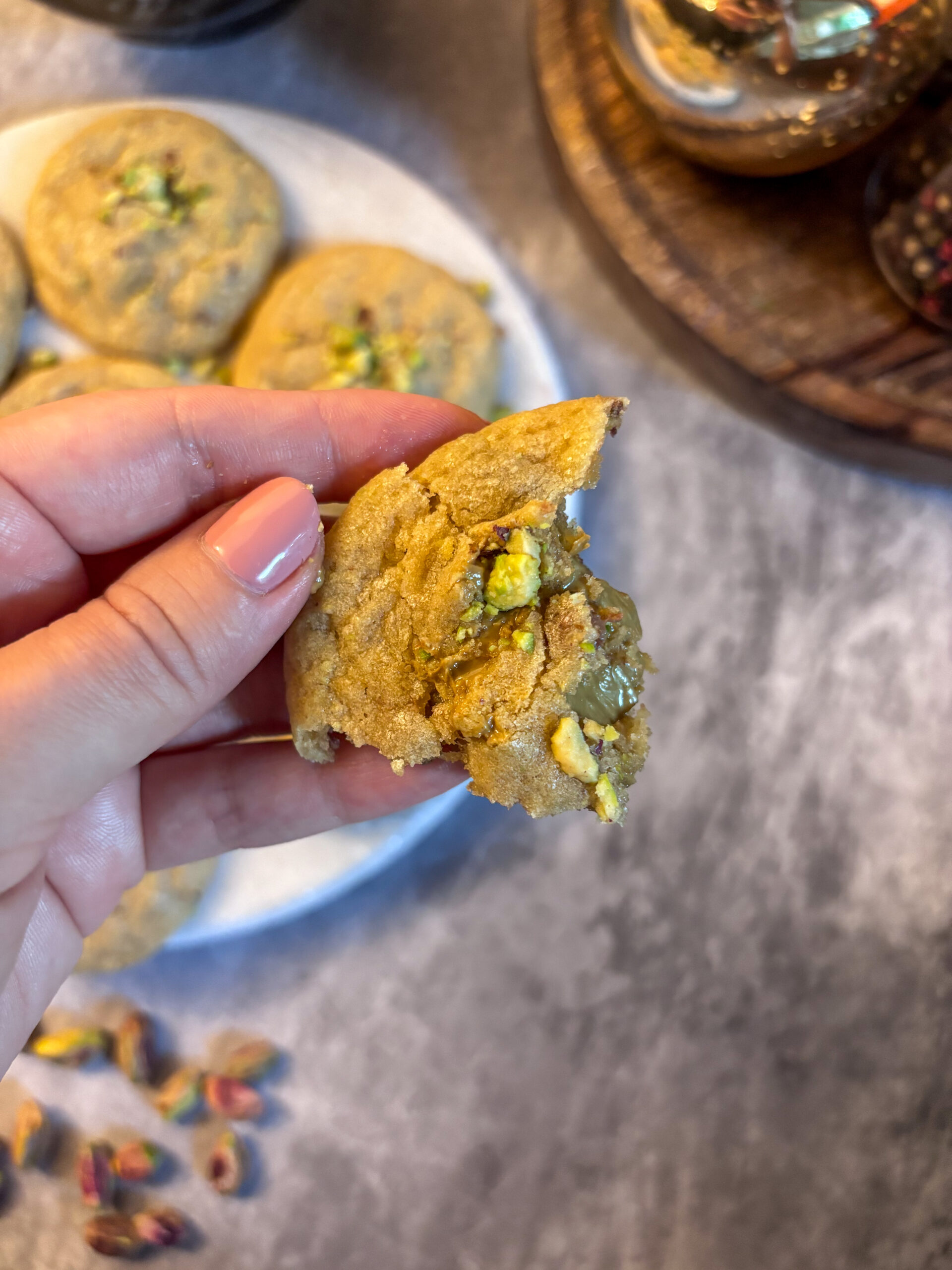 Najhoršie je, že kamkoľvek teraz pridáte pistácie, zrazu si ľudia myslia, že je to „dubajské“. Trend dubajskej čokolády je hlavne v tom, že to je spojenie čokolády, pistáciového krému, ale nesmú chýbať tie divné chrumkavé „vlasy“ (kadaif cesto). Moje cookies žiadne vlasy nemajú (maximálne tak nejaký stratený z mojej hlavy) :D. Takže nie, nejdeme robiť dubajské cookies, len proste pistáciové cookies… ale chuťovo rovnako návykové 😉 Sľubujem.