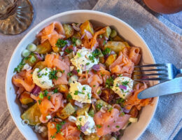 Vôbec som nevedela ako tento recept nazvať. Obed som vymyslela nejak tak z núdze a z chute, keďže včera som mala chuť na niečo s lososom. Tak som si vybrala údeného lososa z mrazničky, mala som ho najprv ráno na toaste ako raňajky, ale stále …
